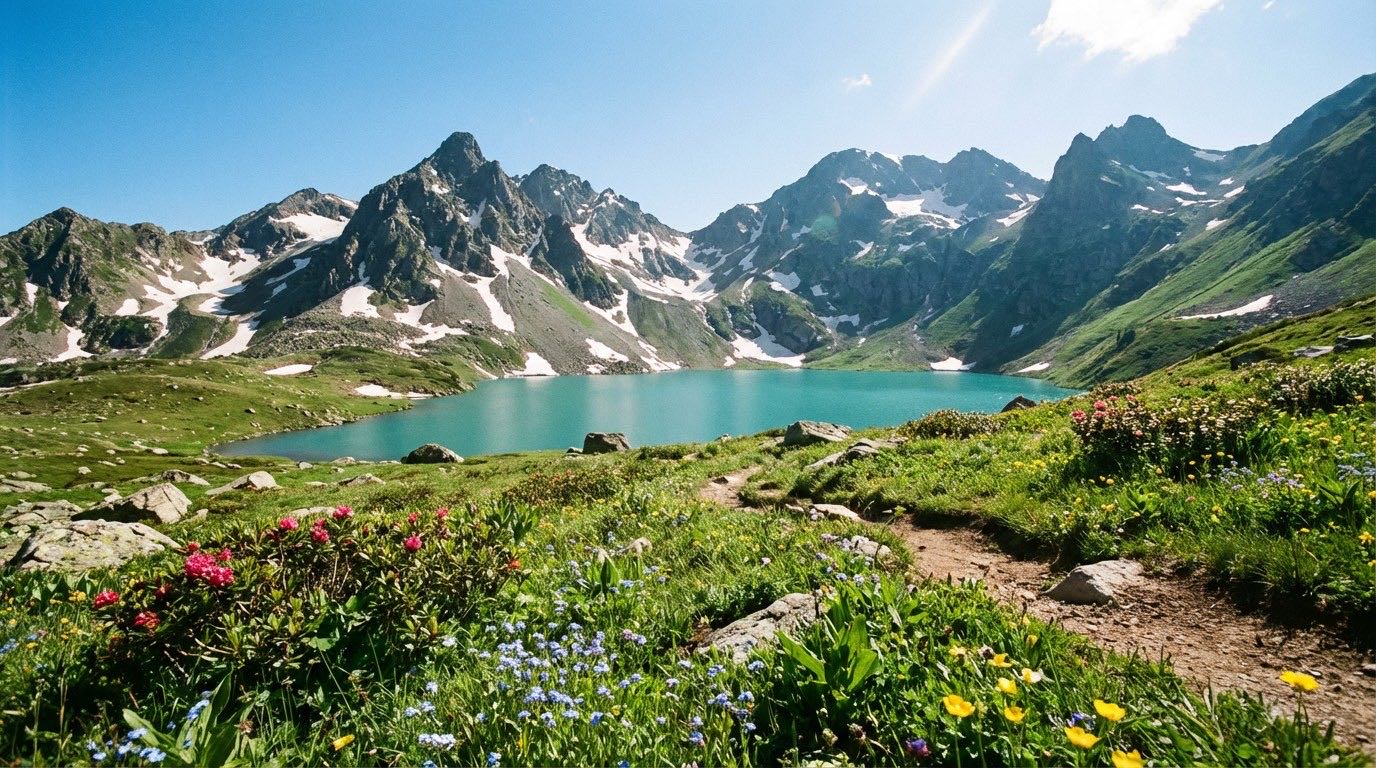Горы, альпийские пейзажи, трек к озёрам. Перевал Гумбаши.